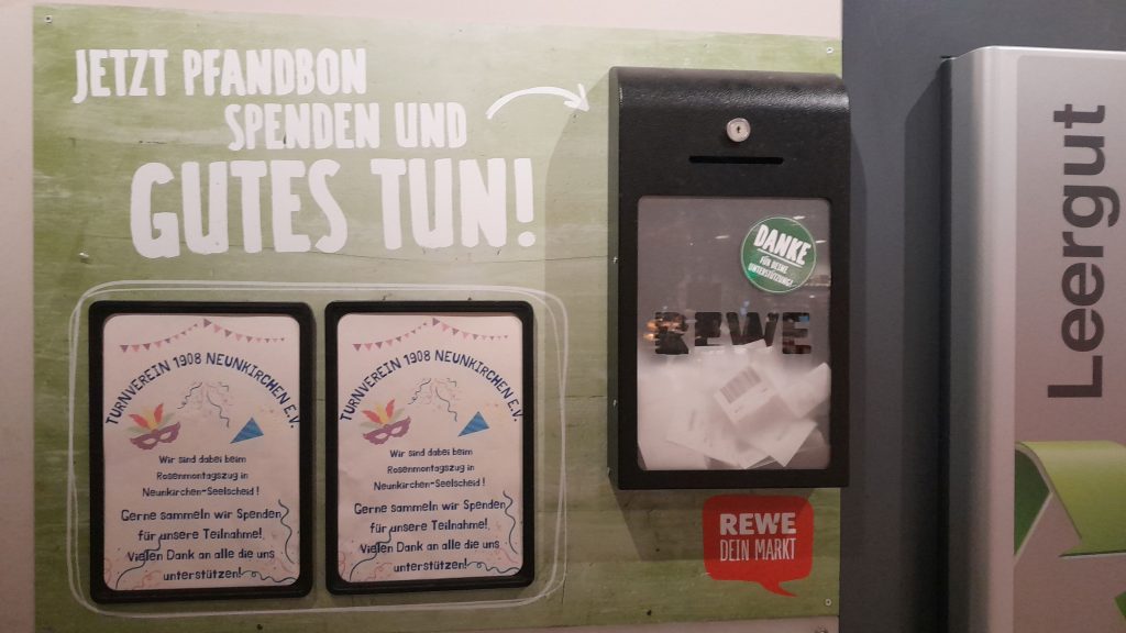 Gerne sammeln wir Spenden für unsere Teilnahme. Die Pfand-Spendenbox befindet sich im REWE-Markt Hermeier neben den Leergutautomaten.